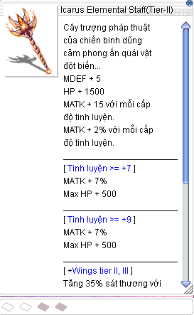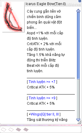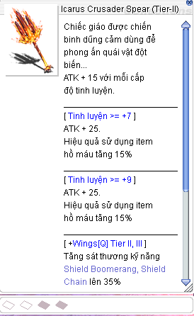 Vũ khi Icarus Chia làm 3 tier: Tier-I, Tier-II, Tier-III