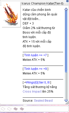 Bạn cần trải qua Phó bản Seal Beast Arena (Normal) và Phó bản Seal Beast Arena (Hard) để thu thập các item mua trang bị Icarus Tier-II.